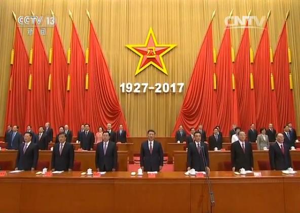 中共中央、国务院、中央军委今天上午在北京人民大会堂隆重举行庆祝中国人民解放军建军90周年大会。中共中央总书记、国家主席、中央军委主席习近平发表重要讲话。中共中央政治局常委、国务院总理李克强主持大会。中共中央政治局常委张德江、俞正声、刘云山、王岐山、张高丽出席大会。