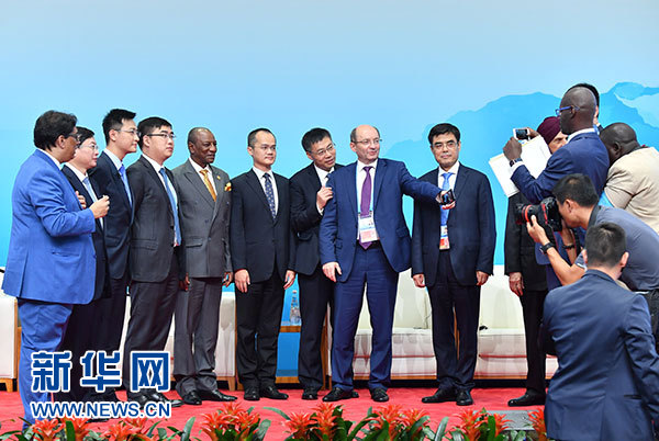 9月4日,2017年金砖国家工商论坛在厦门举行“互联互通”专题研讨。这是专题研讨结束后,发言嘉宾准备合影。新华社记者 李鑫 摄