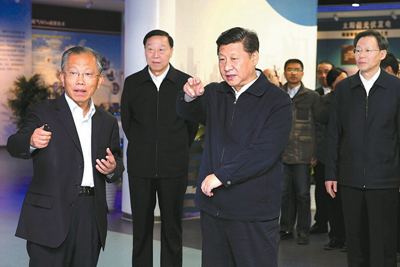 习近平在江苏省产业技术研究院观看成果演示,了解江苏省推动科技体制改革和科技创新体系建设有关情况。 新华日报记者 于先云摄
