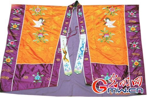汉绣 流行于湖北荆州、武汉一带的传统刺绣艺术,据史书记载,它始于汉,兴于唐而盛于清。汉绣以楚绣为基础,融汇南北绣法之长,逐渐形成以铺、压、织、锁、扣、盘、套为主要针法,平金夹绣为主要表现形式的刺绣艺术体系。汉绣构思大胆,色彩浓艳,画面丰满,装饰性强,处处流露出楚风汉韵,在中国刺绣园地里自成一格,大放异彩。