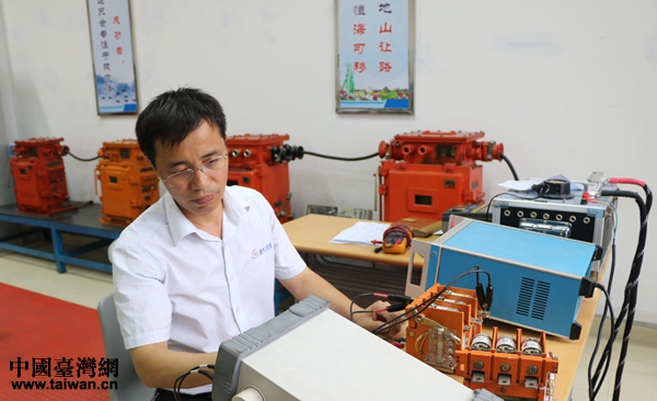 河南省永煤集团车集煤矿机电一队主副井电工班班长游弋(中国台湾网 张丽媛 摄)