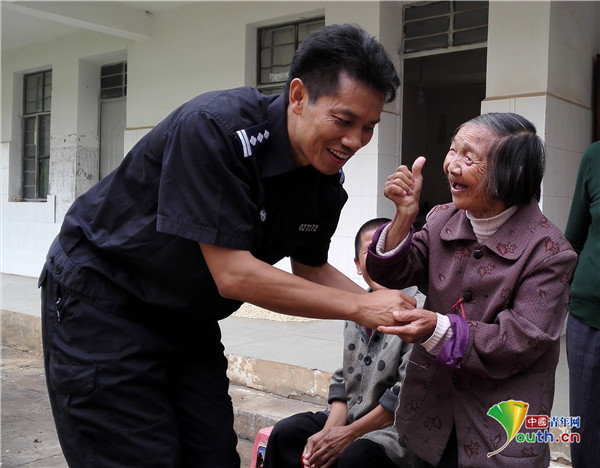 九年里,他经常带领战友到当地百姓家入户走访,把他们当亲人看待,为群众解决实际困难。每到年节,他和队员都要到当地的敬老院帮老人们洗衣拖地做饭,始终如一。他的行动得到当地老百姓的认可和赞扬,群众自发写了一曲花灯戏《缉毒警察是亲人》,在各村寨巡回演唱。