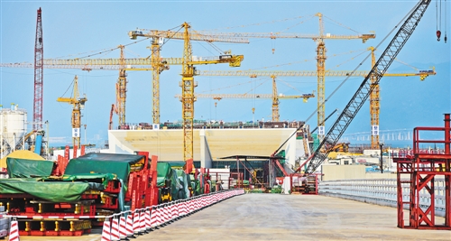 港珠澳大桥西人工岛的海底隧道入口建设现场。新华社记者 刘大伟摄