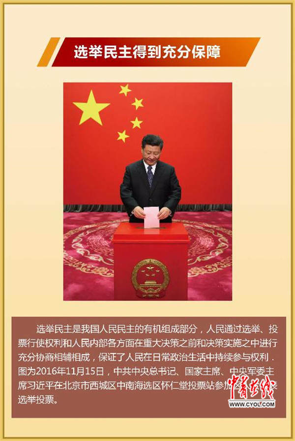 展区内,一张2016年11月15日,中共中央总书记、国家主席、中央军委主席习近平在北京市西城区中南海选区怀仁堂投票站参加区人大代表选举投票的照片吸引了王玉(化名)的目光。今年刚刚参加工作的王玉在大学时曾参加过一次人大代表的选举投票,“那是我第一次参加人大代表的选举投票,当时感觉十分神圣,今天看到总书记和我们一样行使着自己的投票权,十分亲切!”