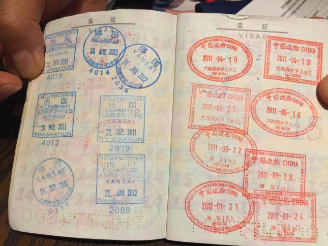 ▲佐藤先生展示近年频繁往来中国的出入境纪录
