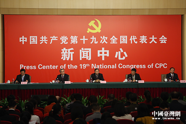 10月20日上午,十九大新闻中心在梅地亚中心举行记者招待会。(中国台湾网 于斯文 摄)