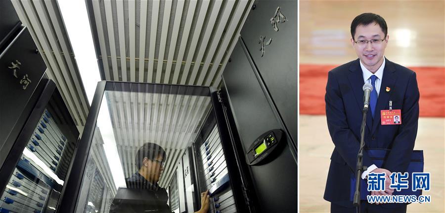 左图:2月10日,国家超算天津中心工作人员在维护“天河一号”(新华社记者 岳月伟摄);右图:10月19日,党的十九大代表、国家超算天津中心应用研发部部长孟祥飞在北京人民大会堂接受采访(新华社记者 王建华 摄)。