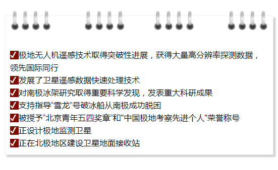 过去五年,我国极地研究工作取得突飞猛进的发展。我带领团队发展的卫星遥感数据快速处理技术,对南极冰架进行研究,取得了重大科研成果,发表在美国科学院院报,是我国极地气候研究的标志性成果。2014年,该技术支持指导被困南极重冰区的我国“雪龙”号破冰船,依靠自身努力,成功自救脱困。
