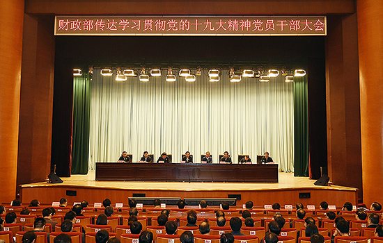 10月26日上午,财政部党组召开专题会议,传达学习党的十九大和十九届一中全会精神,研究部署财政部学习宣传贯彻党的十九大精神工作。部党组成员一致认为,党的十九大是在全面建成小康社会决胜阶段、中国特色社会主义进入新时代的关键时期召开的一次十分重要的大会,是一次不忘初心、牢记使命、高举旗帜、团结奋进的大会,为党和人民事业发展进步指明了前进方向,为我们党继续带领全国各族人民团结奋斗奠定了重要的思想政治基础,为全面贯彻党的基本理论、基本路线、基本方略提供了坚强的政治保证和组织保证。要坚决维护以习近平同志为核心的党中央权威和集中统一领导,坚决维护习近平总书记党中央的核心、全党的核心地位。要认真学习领会习近平总书记在党的十九届一中全会上发表的重要讲话,全面贯彻落实党的十九大精神,更好发挥财政在国家治理中的基础和重要支柱作用,为实现党的十九大确定的目标任务而不懈努力。