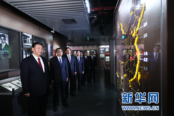 习近平等在上海中共一大会址纪念馆参观。新华社记者 李涛 摄