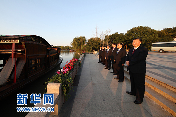 下午,习近平等从上海来到浙江嘉兴南湖边,瞻仰红船,并参观了南湖革命纪念馆。参观结束时,习近平发表了重要讲话。