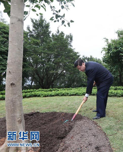 习近平在深圳莲花山公园种下一棵高山榕树。 新华社记者 兰红光 摄