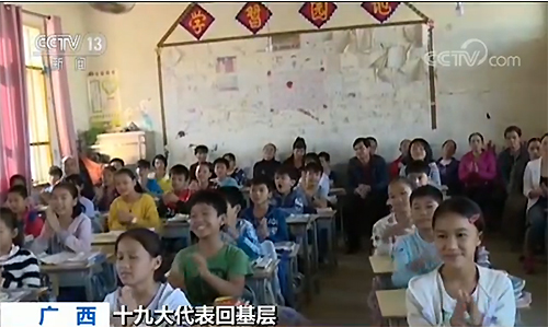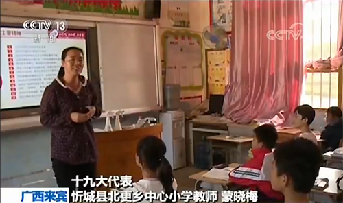 十九大代表蒙晓梅是广西来宾的一名普通乡村教师,回到学校,她精心制作了宣讲课件,将十九大报告精神融入校园。