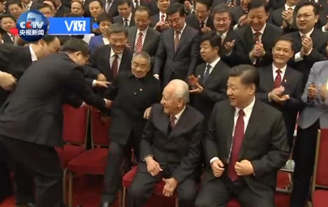 握手后,习总书记回到队伍中间,准备跟大家合影。“总书记看到我和黄旭华,就邀请我们坐到他的身旁。”黄大发说,总书记握住他们的手,微笑着问候说:“你们这么大岁数,身体还不错。你们别站着了,到我边上坐下。”