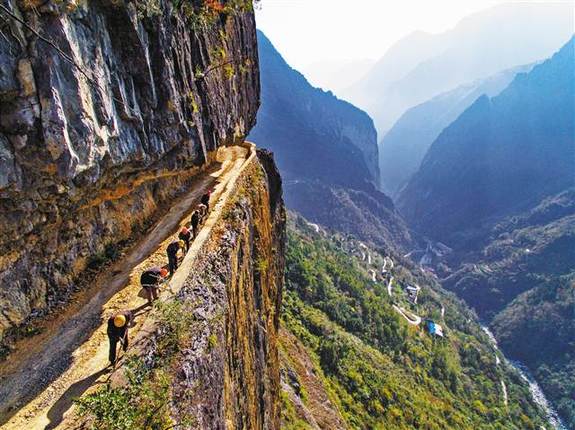 可是,没有任何大型机械化设备,也没有炸药,如何在绝壁上开路?