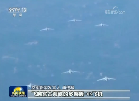 空军新闻发言人 申进科:飞越宫古海峡的多架轰-6K飞机,从关中腹地某机场起飞,编队前出第一岛链;飞越巴士海峡和南海战斗巡航的多架多型轰炸机,从部署机场起飞编队前出;所有飞机当天完成训练任务和战斗巡航。
