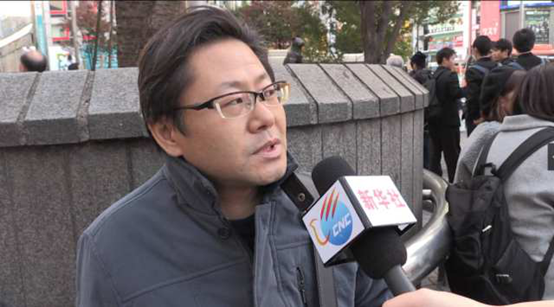 图为一位日本民众接受采访。