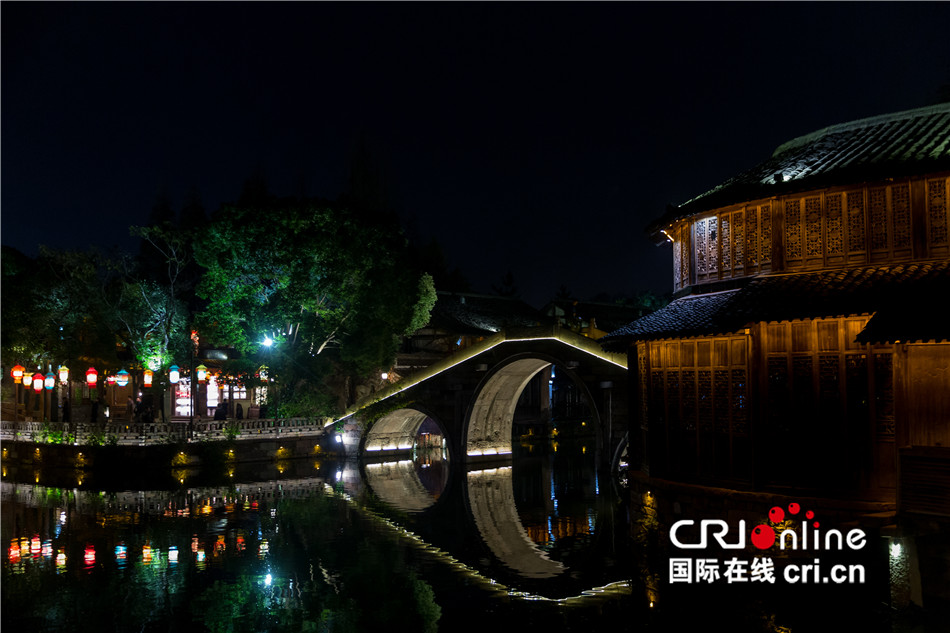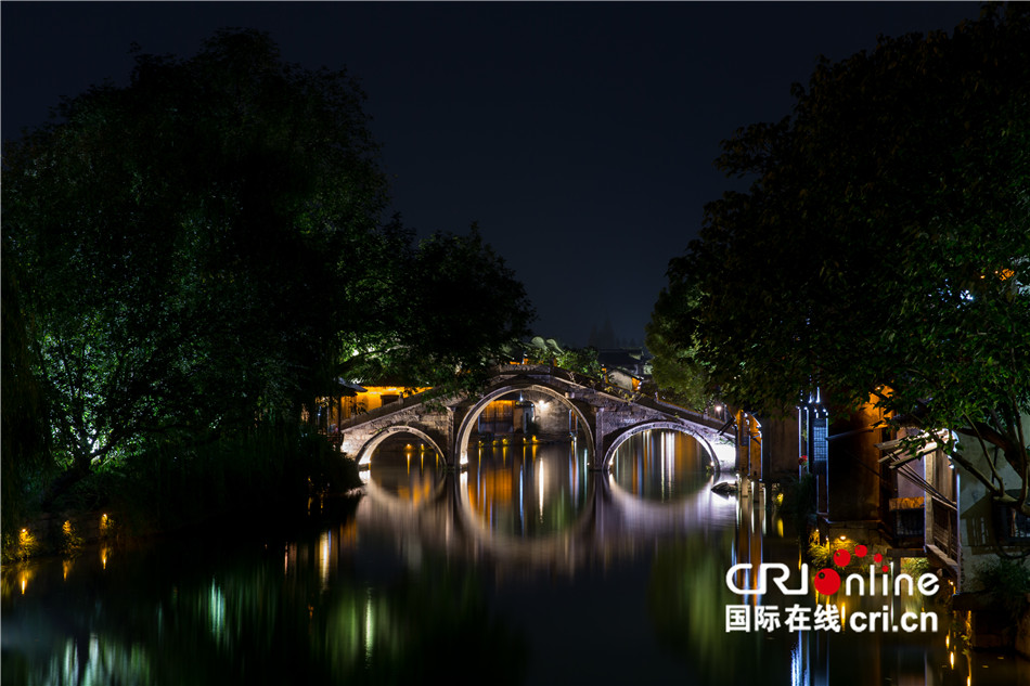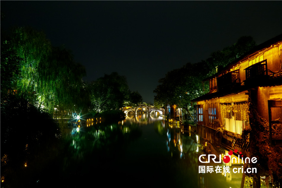 国际在线消息(记者 沈湜):2017年12月2日夜晚,距离第四届世界互联网大会开幕还剩下不到一天时间,大会举办地乌镇夜色中隐去了白天的喧闹,古韵悠悠。拱桥小巷,白墙黛瓦,乌镇将这一切写入倒影。在夜色中漫步河岸,小桥流水、垂柳依依、树影婆娑。泊舟向晚,桨声灯影,乌镇美景如同翻开的画卷,安静沧桑。