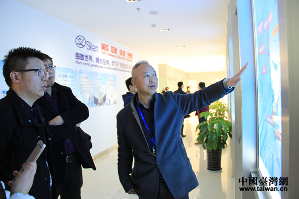 成都士兰半导体制造有限公司负责人向记者介绍公司发展情况。(中国台湾网 李宁 摄)