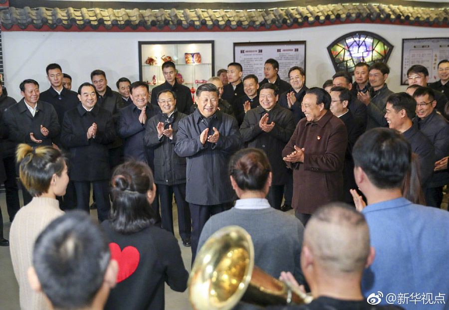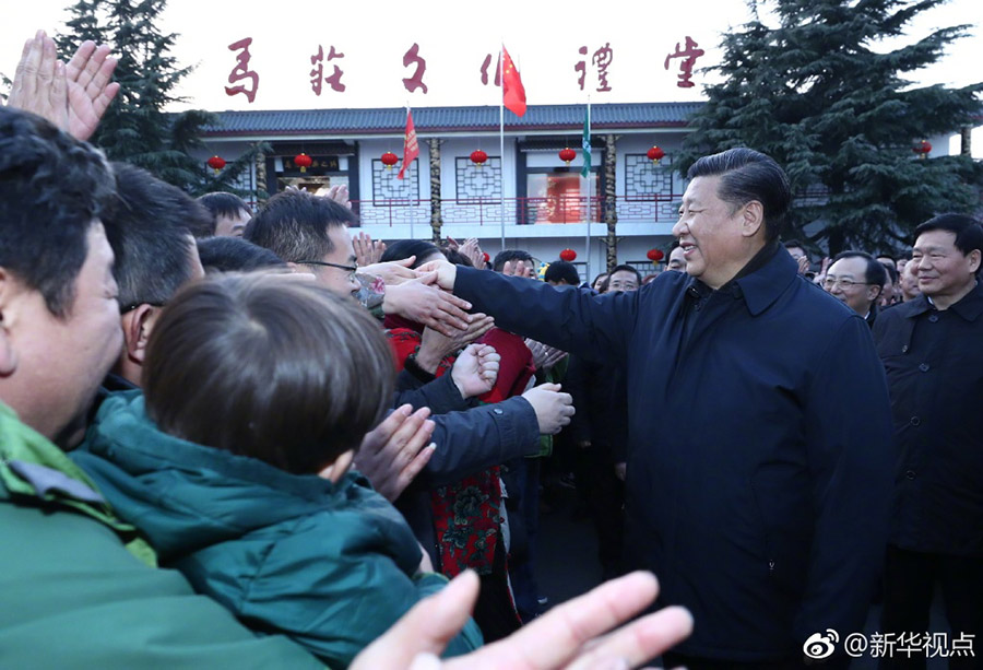 马庄村的村民乐团远近闻名。习近平走进村文化礼堂,饶有兴致观看了他们为宣讲十九大精神排练的一段快板。习近平说,加强精神文明建设在这里看到了实实在在的落实和弘扬。实施乡村振兴战略不能光看农民口袋里票子有多少,更要看农民精神风貌怎么样。