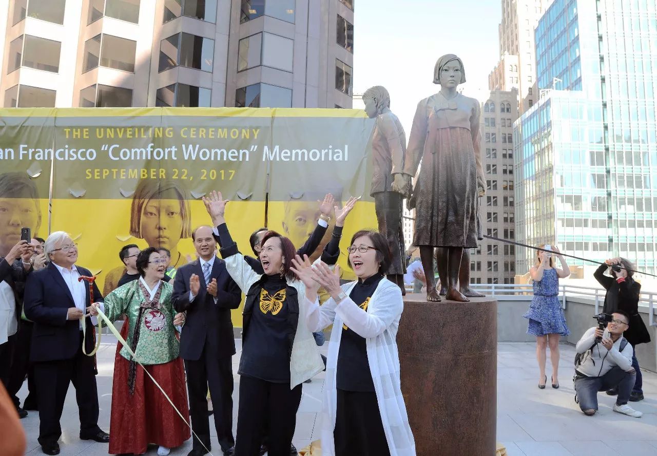 2017年9月22日,韩国、中国、菲律宾“慰安妇”受害者群雕在旧金山圣玛丽广场落成,警醒世人牢记日本侵略者带来的灾难,珍惜和平生活。然而就是这样的一座象征着珍惜和平的群雕,却在日美之间,掀起了不小的外交风波。