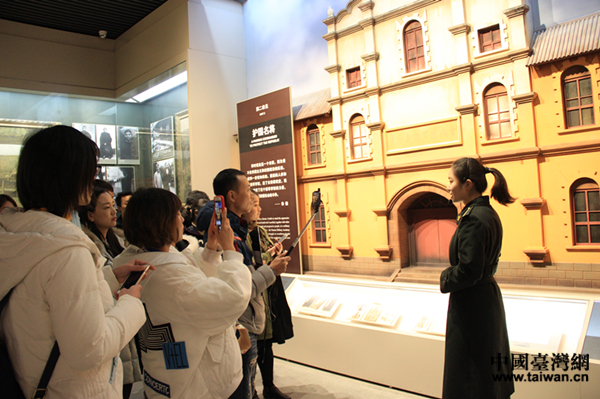 记者们认真听讲解员介绍朱德的成长经历。(中国台湾网 李宁 摄)