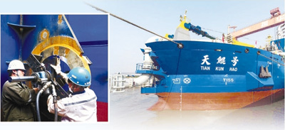 望着水中的“天鲲号”,作为这条船的总体策划者,振华海洋工程集团副总经理奚璐好生感慨:“当时拿下这条船的建造合同,很光荣,很激动。知道建造难点多,但真的造起来,发现难点远比预想的还多。可把兄弟们累坏了。”