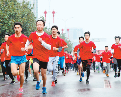 湖南衡阳市民参加元旦环城赛跑。刘爱成摄(新华社发)