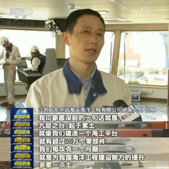 在江苏启东长江入海口,技术人员对这艘深海原油转驳船进行最后的建造调试,它具有世界最先进的动态定位能力,即将下水试航。