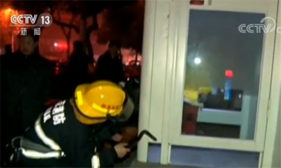 消防队员十分钟就赶到了现场,用撬棍撬开了门锁。