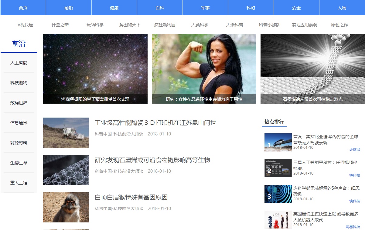 作为中国科普的重要传播窗口,科普中国网2.0版本在内容方面,以市场调研为基础,以科普内容的学科门类及用户所关注的热门内容为分类依据,从传播学角度对过往栏目进行整合重构,最终形成了包括前沿、健康、军事等七大频道。同时,还针对时下热门,以及有趣的科普知识点进行整合,通过专题页面,以科普游戏、视频、漫画等多样化、参与和趣味感十足的形式,为广大网友带来全新的科普体验。