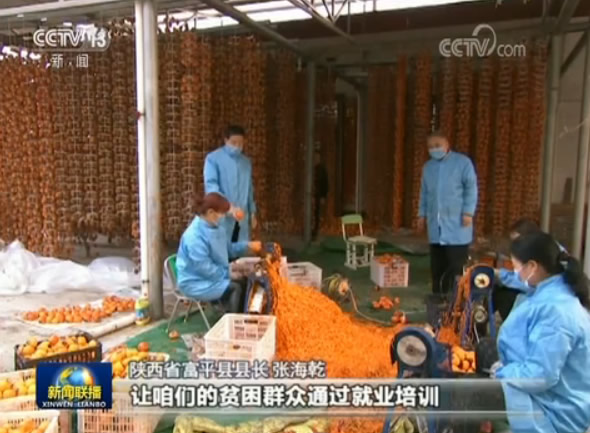 这两天,陕西富平的一条条柿饼加工生产线正开足马力,全力完成订单需求,将有很多困难群众从这项产业受益。脱贫工作中,陕西省要求每个贫困村有一个扶贫产业项目,每个贫困户有一个短平快增收项目,脱贫户有长效致富产业。在太白村,有270多个贫困户都享受到了这样的政策扶持。