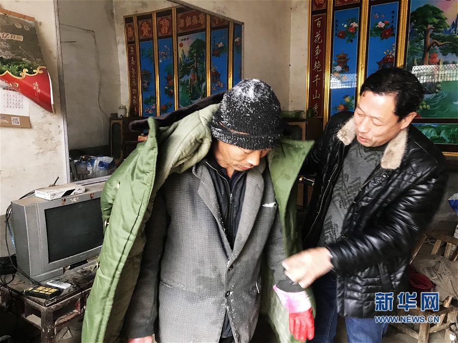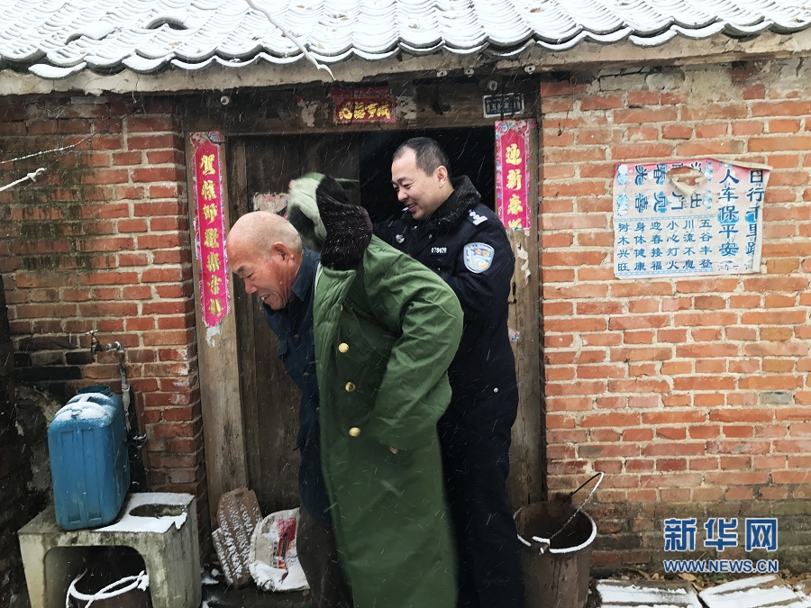 当日一大早,新野县公安局40余名包村民警顶风冒雪纷纷走村入户,深入帮扶的贫困户家中,检查预防安全隐患,及时送去棉衣、棉被、面粉等保温防寒、生活用品,把党和政府的温暖送到贫困户的家中。新华网发(游黎/文杨峰/图)