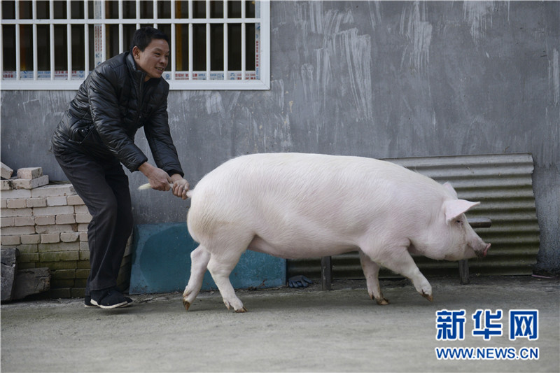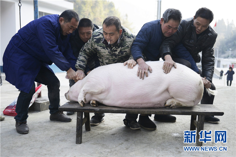 图为杀年猪的场景。新华网 欧阳小洁 摄