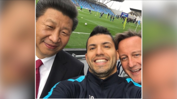 Xi’s a big fan of all kinds of sports. He paid a visit to the Manchester City Football Club and took a selfie with Cameron and Manchester City star Sergio Aguero.