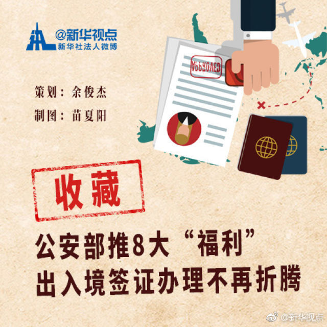 新华网北京1月23日电 公安部将于2月1日起施行8大便民举措,对于出入境的小伙伴们来说,不但能简化手续,还可以节省开支。看看都有哪些福利!(记者余俊杰 据新华社“新华视点”微博报道)