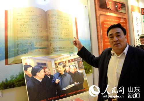山东省临沭县曹庄镇朱村支部书记王济钦现场唱起了传承70多年的抗日名曲《沭河的歌声》。(摄影:胡洪林)
