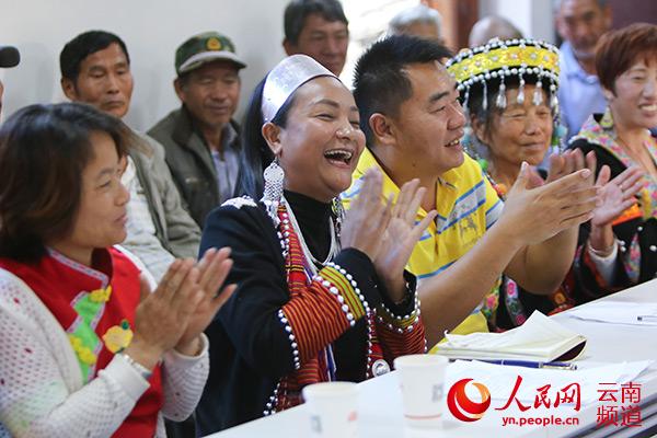 十九大代表杨娜将十九大报告编成歌曲,同村民一起欢唱。人民网 李发兴 摄