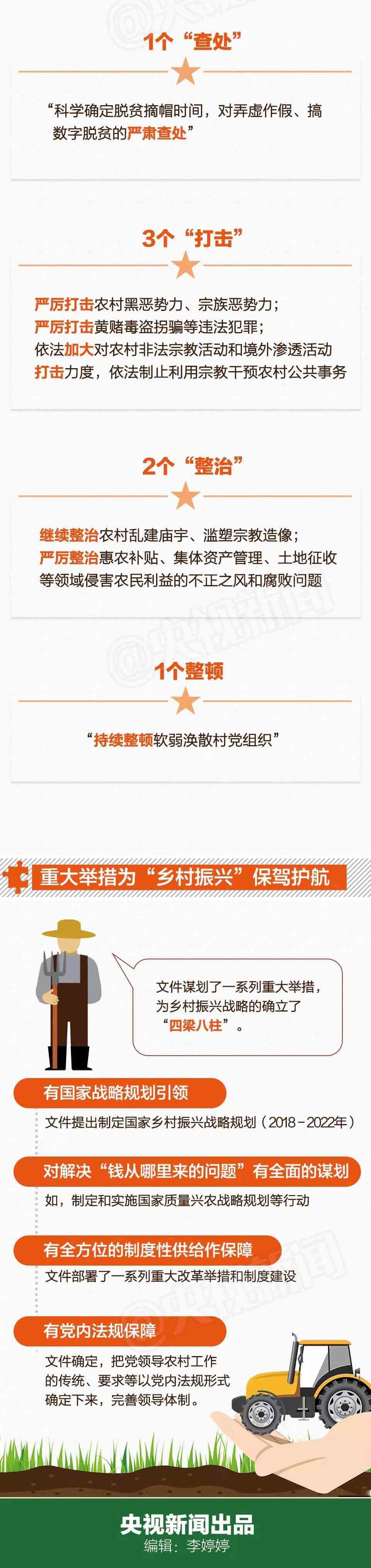 《意见》是对十九大“乡村振兴”这个全新提法的系统性表述。什么叫“乡村振兴”?怎么干?要达到何种目标?什么样的标准才称得上“乡村振兴”?此外,这份文件中还有一系列“禁止性规定”,哪些事情不能干,哪些是被禁止的,哪些会被严厉处罚?一图读懂↓
