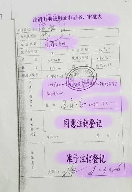 奔球制管名下土地使用证被注销