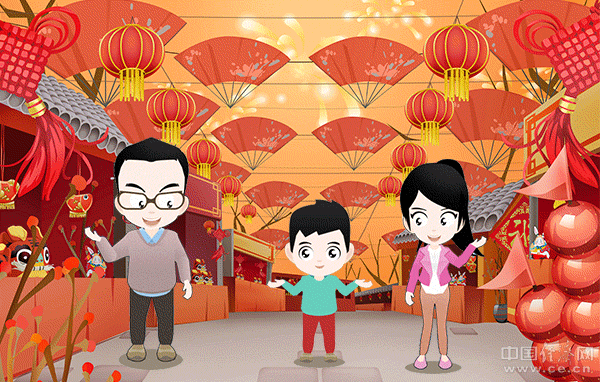 爸爸:除夕团圆吃年夜饭,过年逛庙会品文化大餐。儿子,今天的曲艺表演和“非遗”文化展示可是绝对不容错过的。
