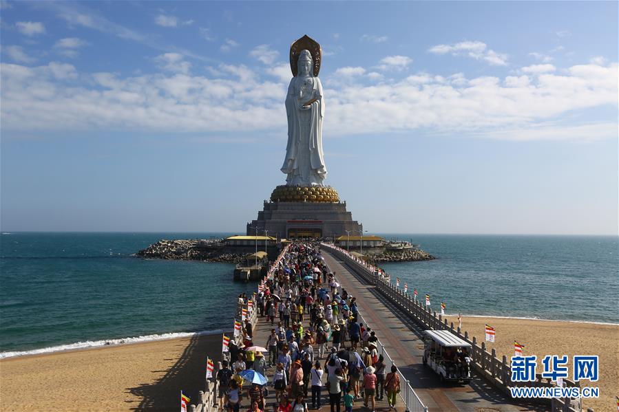 2月18日,游客在海南省三亚市南山文化旅游区观光游览。经国家旅游局数据中心综合测算,今年春节全国共接待游客3.86亿人次,同比增长12.1%,实现旅游收入4750亿元,同比增长12.6%。新华社发(陈文武 摄)