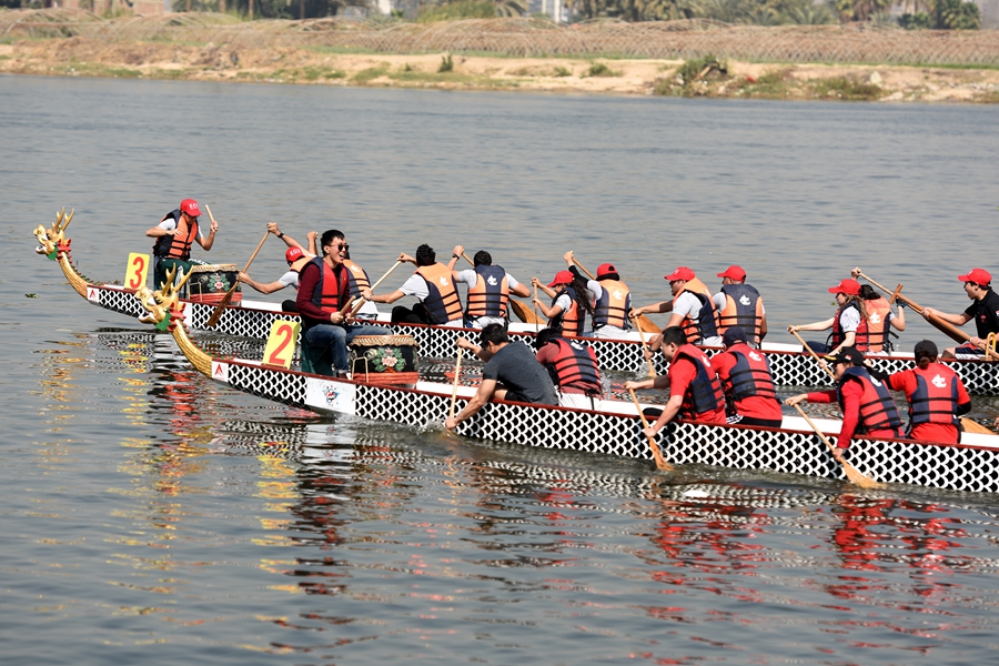 “欢乐春节”尼罗河龙舟大赛在埃及开罗尼罗河畔举行。(图片来源:新华社)