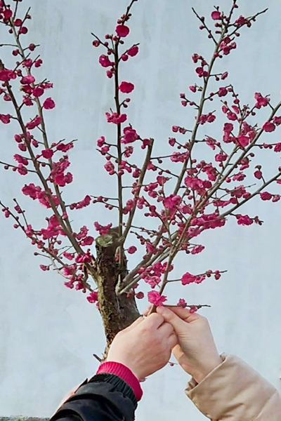 在广袤的郊外,我们两个人有种信步天地间的逍遥自在!路过二姑父的“世外桃源”时,一股沁人心脾的清香袭来。原来是他果园里那株去年移植的乌梅正开的热烈!