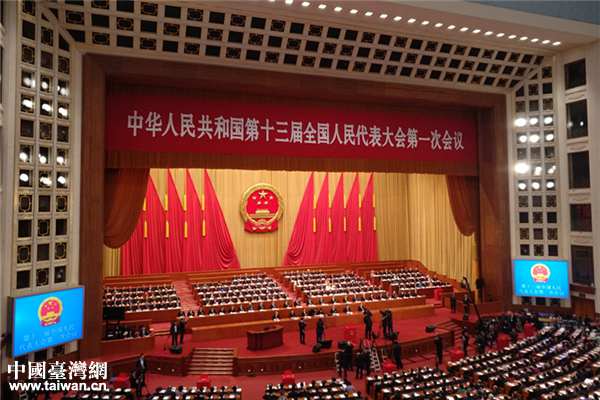十三届全国人大一次会议11日下午在人民大会堂召开第三次全体会议。(中国台湾网 何建峰 摄)