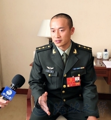 全国人大代表、特战队员黄鑫接受记者采访