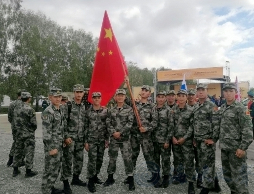 中国参赛队员比武前在俄罗斯赛场合影