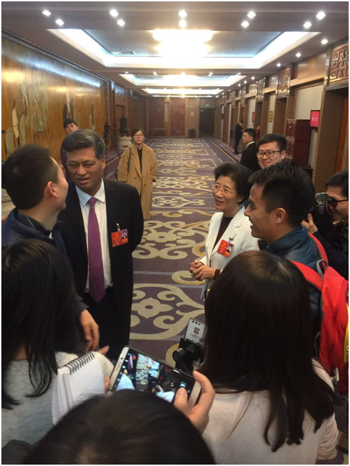 【《法律与生活》两会记者 盛学友 报道】3月12日下午,在广东代表团驻地,全体代表合影前,马兴瑞省长和记者们聊天笑声不断。因为《法律与生活》杂志社记者和他是山东籍黑龙江老乡又是哈工大校友,当时马省长和我聊得多一些,一下子成了跟前代表和记者目光的“中心”。马省长幽默诙谐的话语,把我们都逗乐了。在场的记者同行,抓拍了这两个镜头。