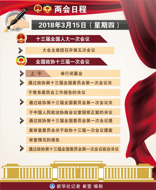 3月15日:全国政协十三届一次会议举行闭幕会