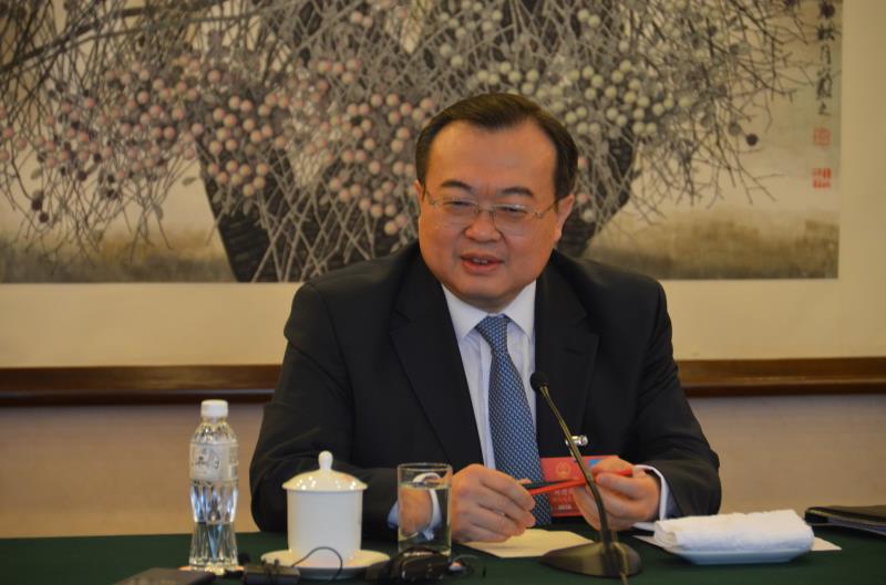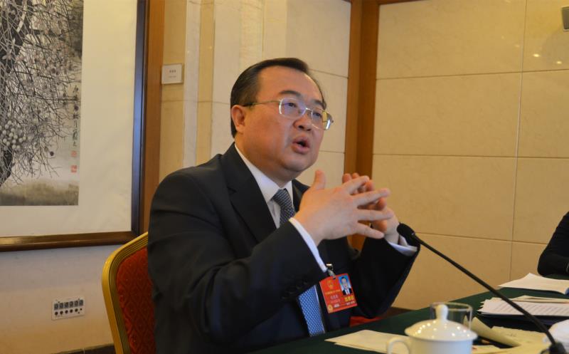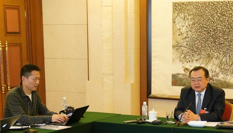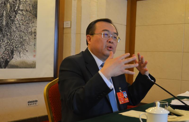 刘建超代表在回答《法律与生活》记者的提问/中新社记者毛建军 摄